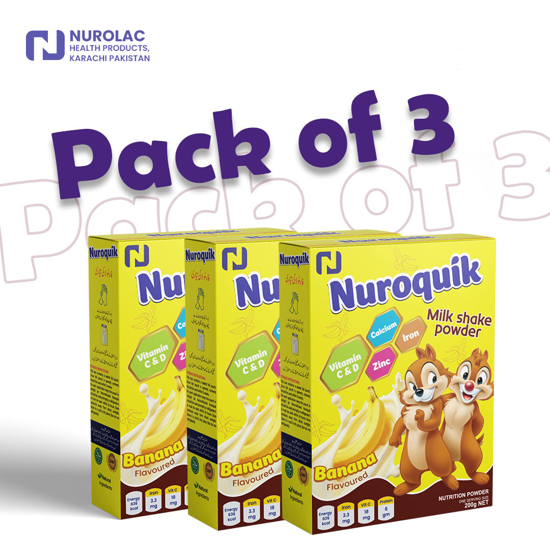 bundle of 3 Nuroquik Banana flavour 200 Gram | best brain booster drink for kids pakistan