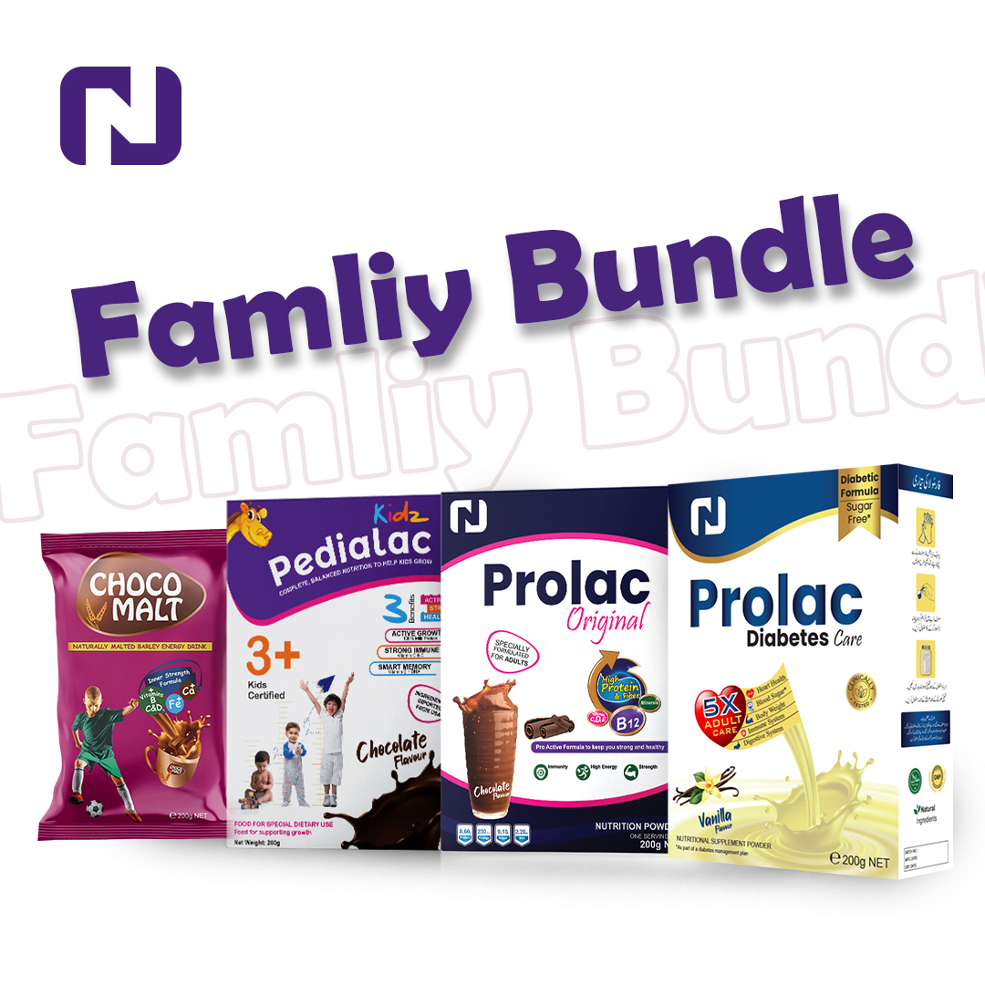 Buy Family Bundle β Prolac Original + Prolac Diabetes + Pedialac + Chocomalt (200gm each) online in Pakistan.